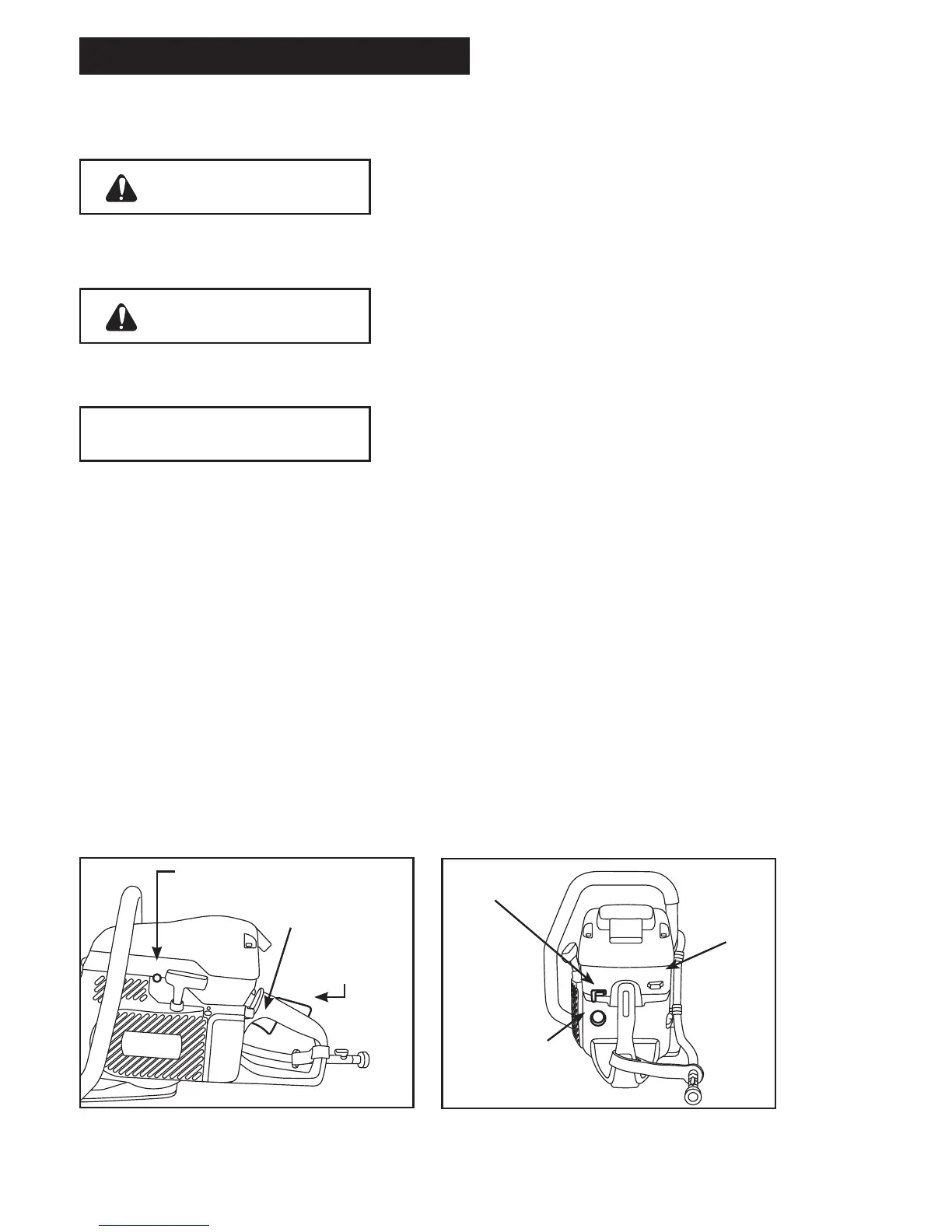 Place the saw on clear ground. Ensure that secure footing is