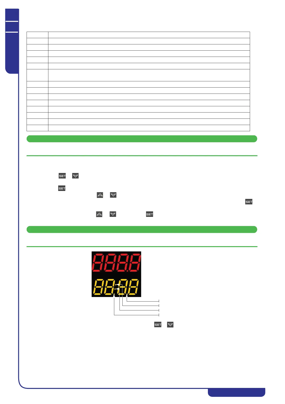 1. Press + for 3 seconds. The upper display shows the label “PASS”, the lower display shows the label