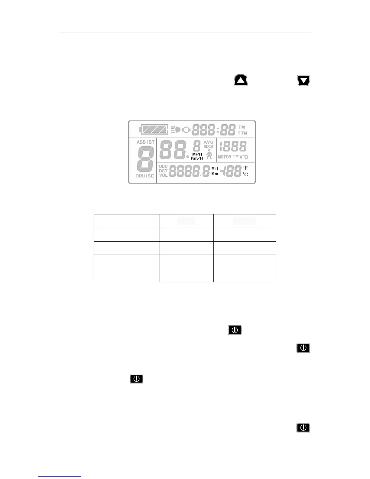 button (SW) shortly again, and the meter will enter into the maximum riding speed