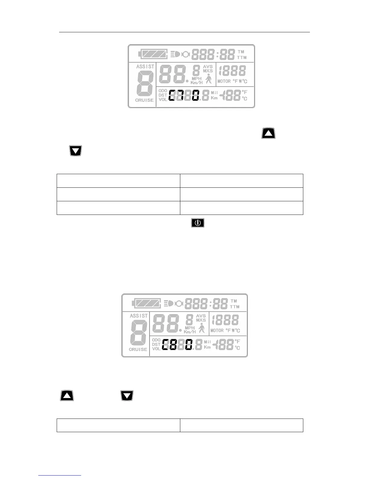 C7 is cruise function setting mode. The setting range is 0 or 1, hold button (UP)