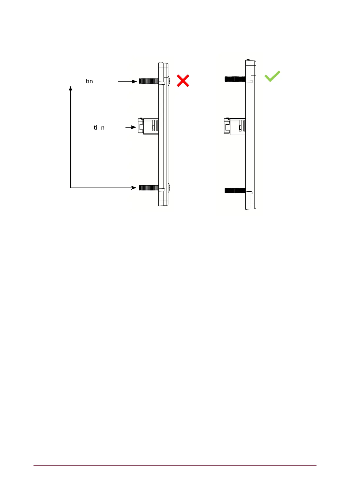 Screw heads must not protrude above the mounting hole cavity