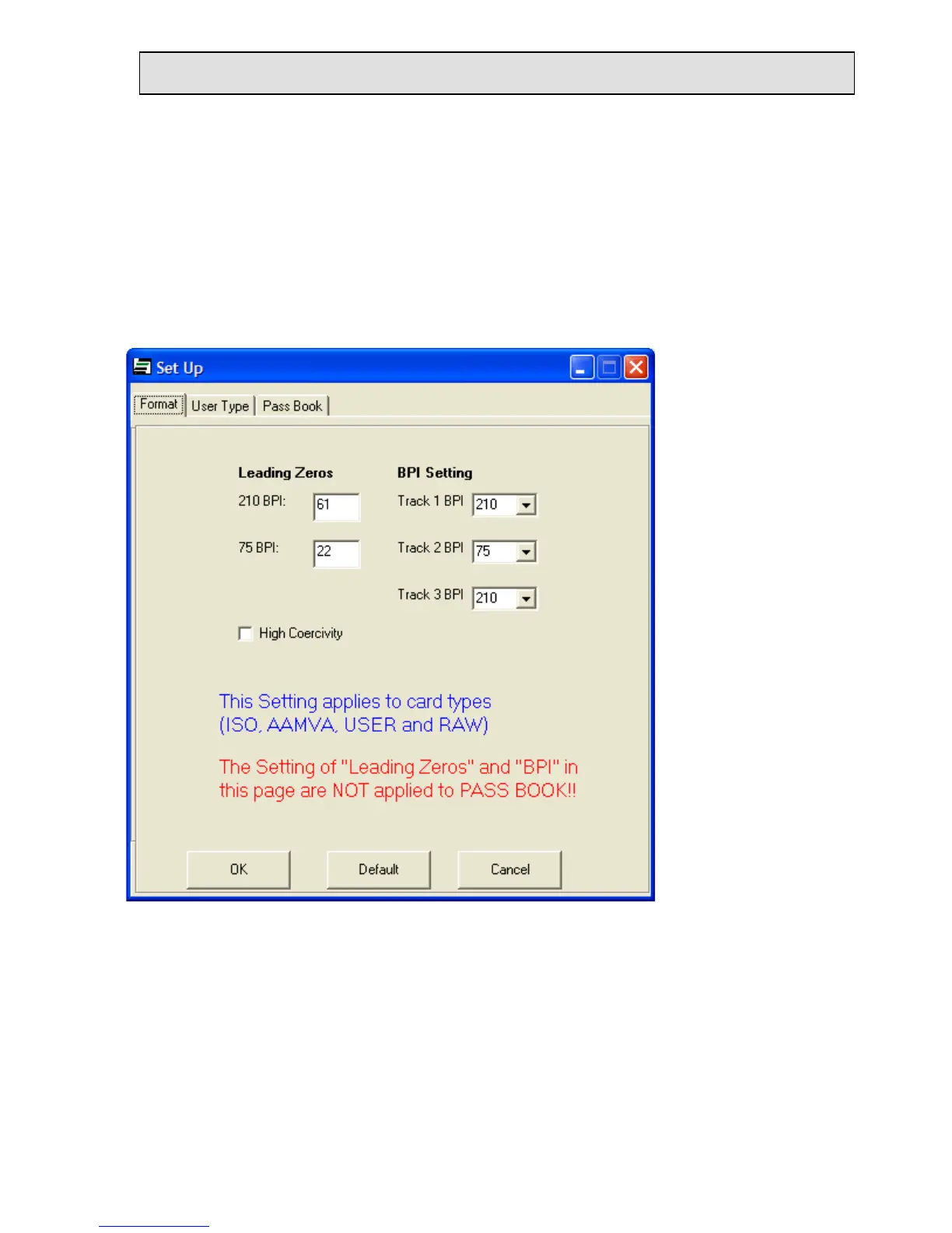 The WorkShop default setting is for Lo-Co magnetic stripe cards. For Hi-Co magnetic