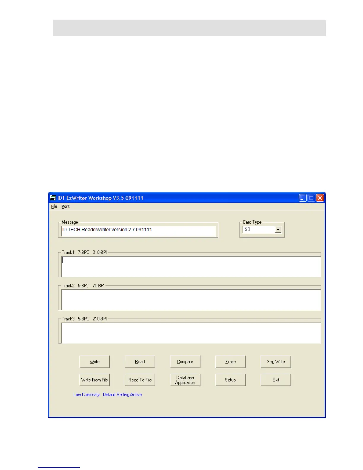 for reading or writing a magnetic stripe. This is the only box with a pull-down menu. More