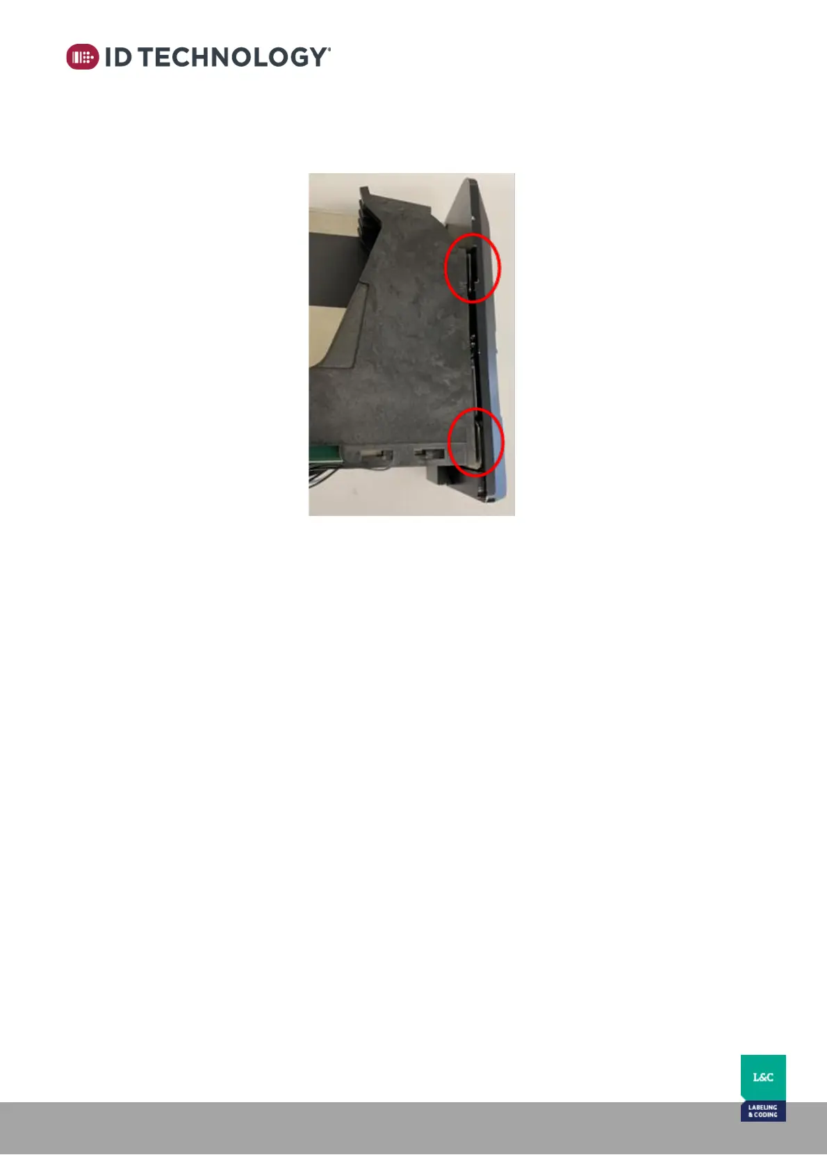 - Replace the right-side cover and tighten the upper cartridge stall screw