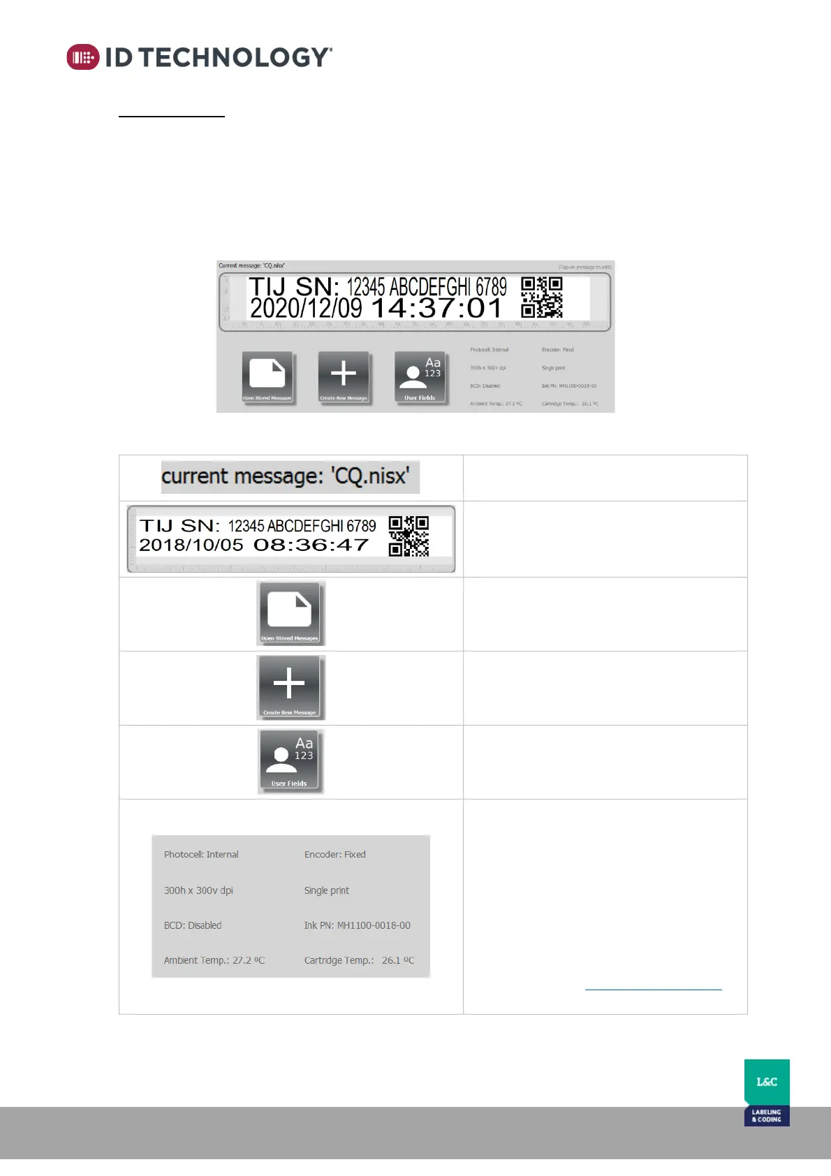 - Two buttons for opening any stored print message or creating a new one