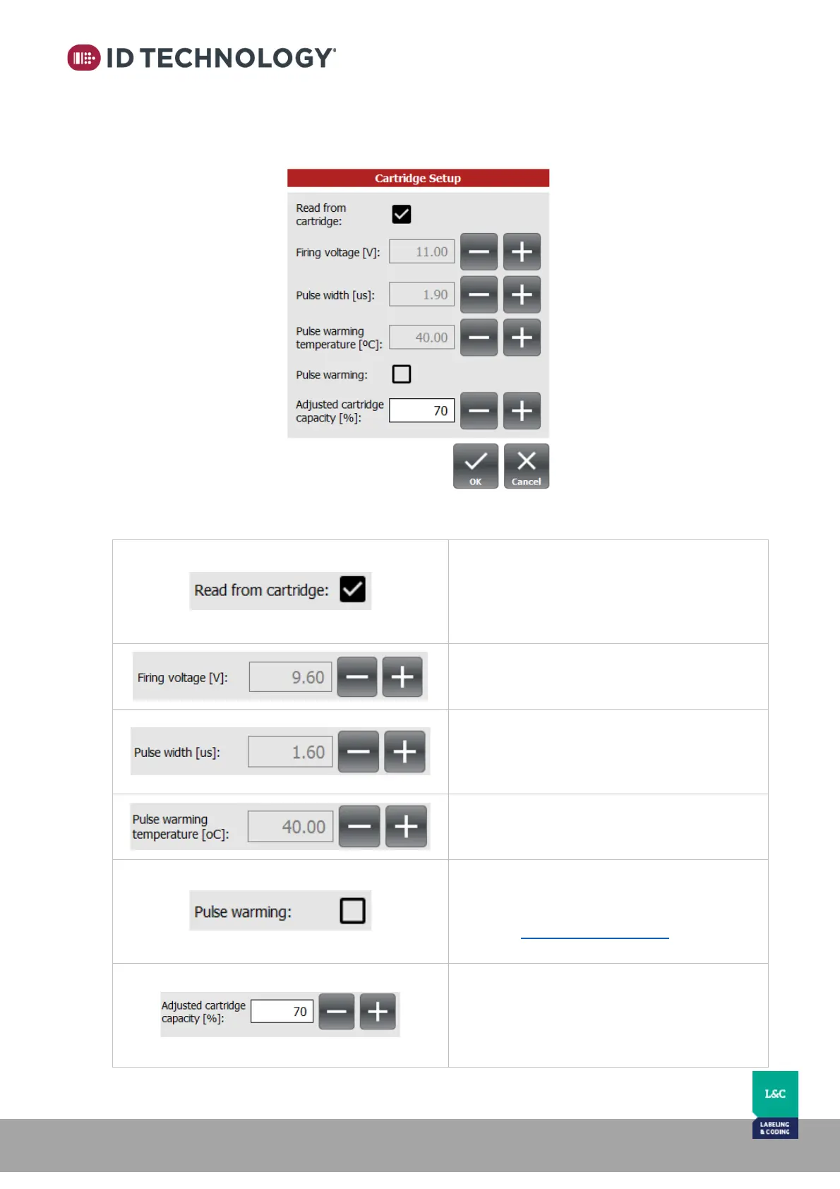 This submenu displays cartridge info and the ability to alter cartridge settings.