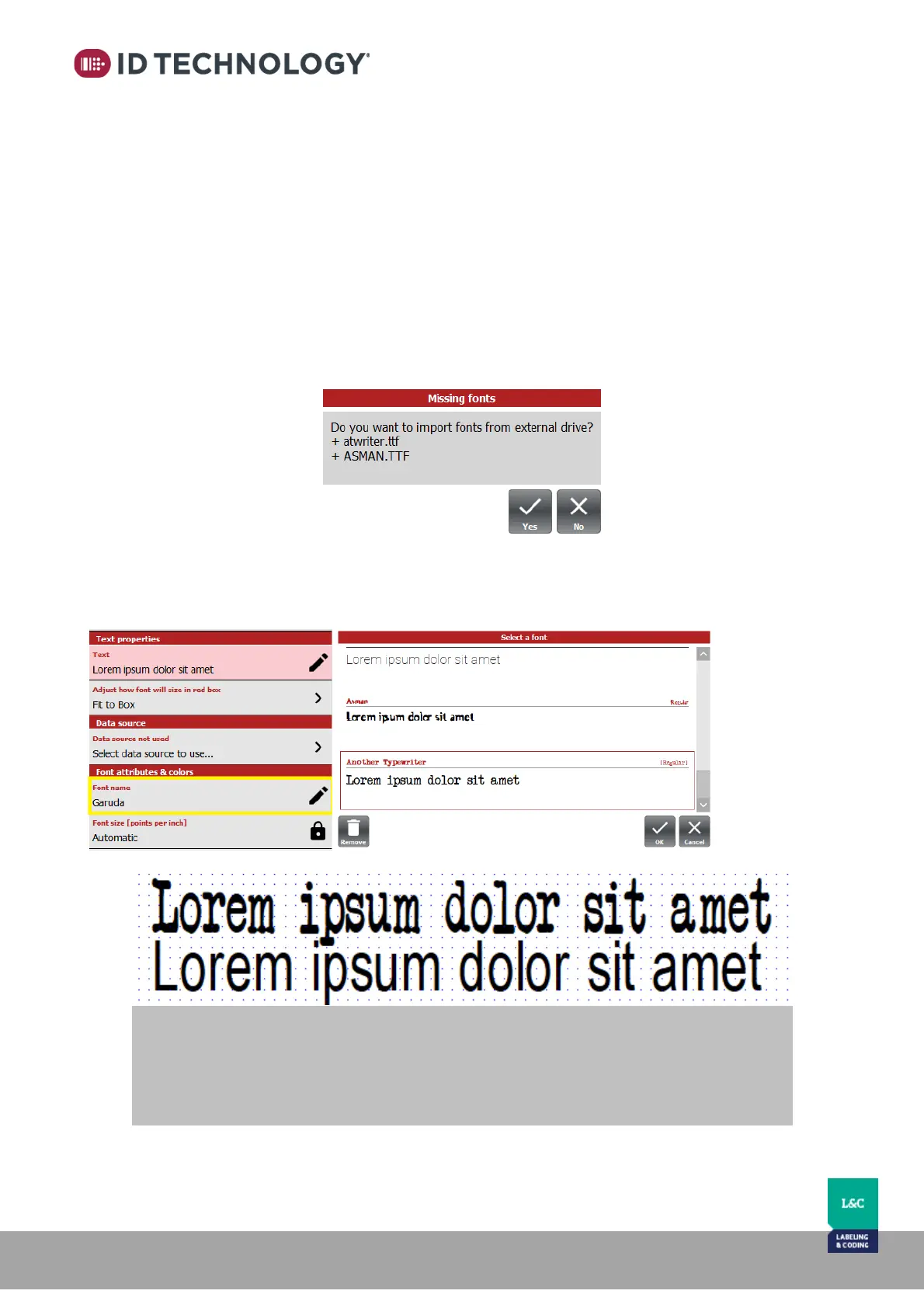 The printer comes with many Font types. It is possible to load more fonts in case a new font is