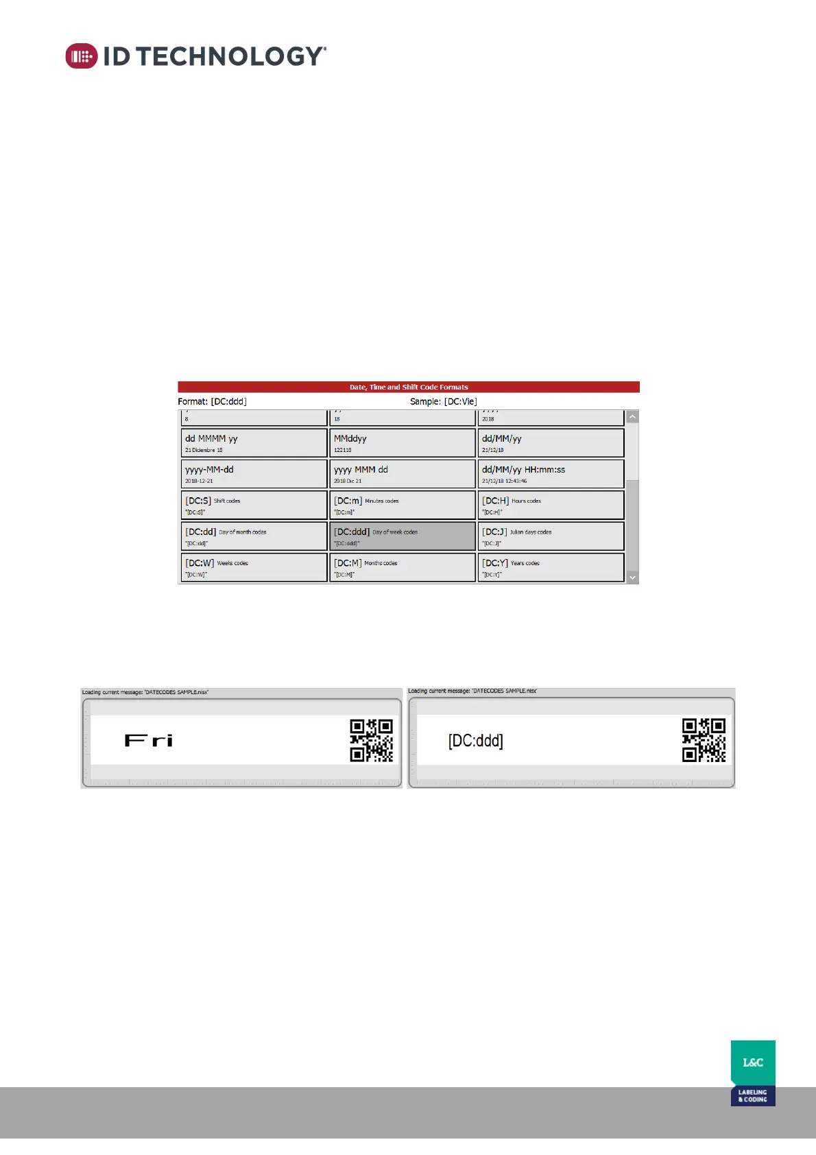 The printer allows printing of different text depending on the actual date/time. For example, it