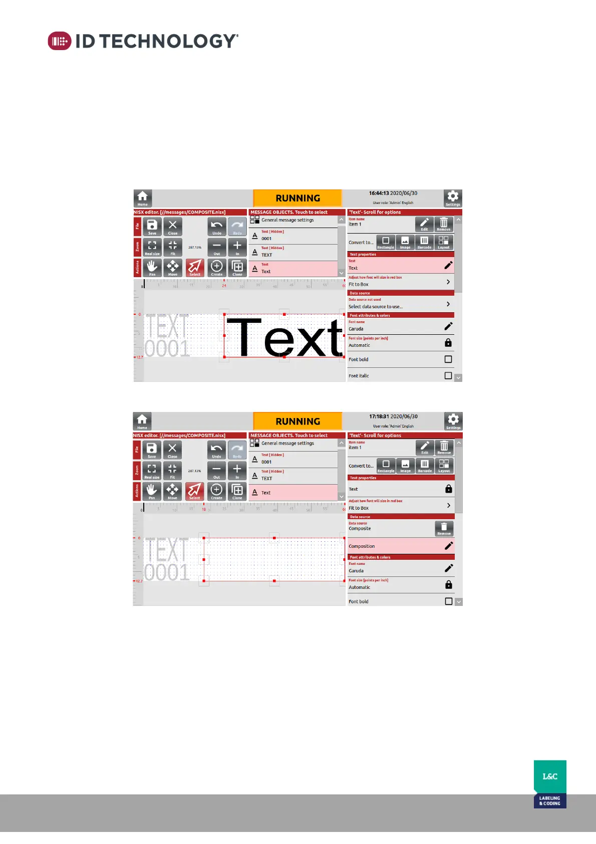TIJ printer allows to design messages with multiple items in one field that are composed of other
