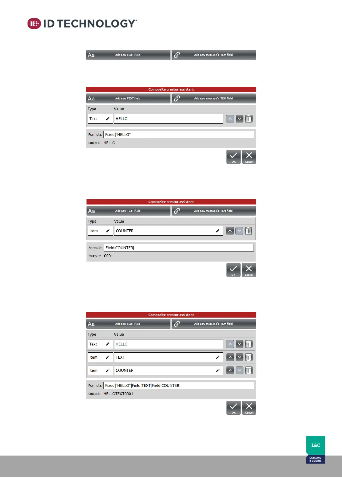 There are 2 types of field: “TEXT” and “message’s ITEM”.