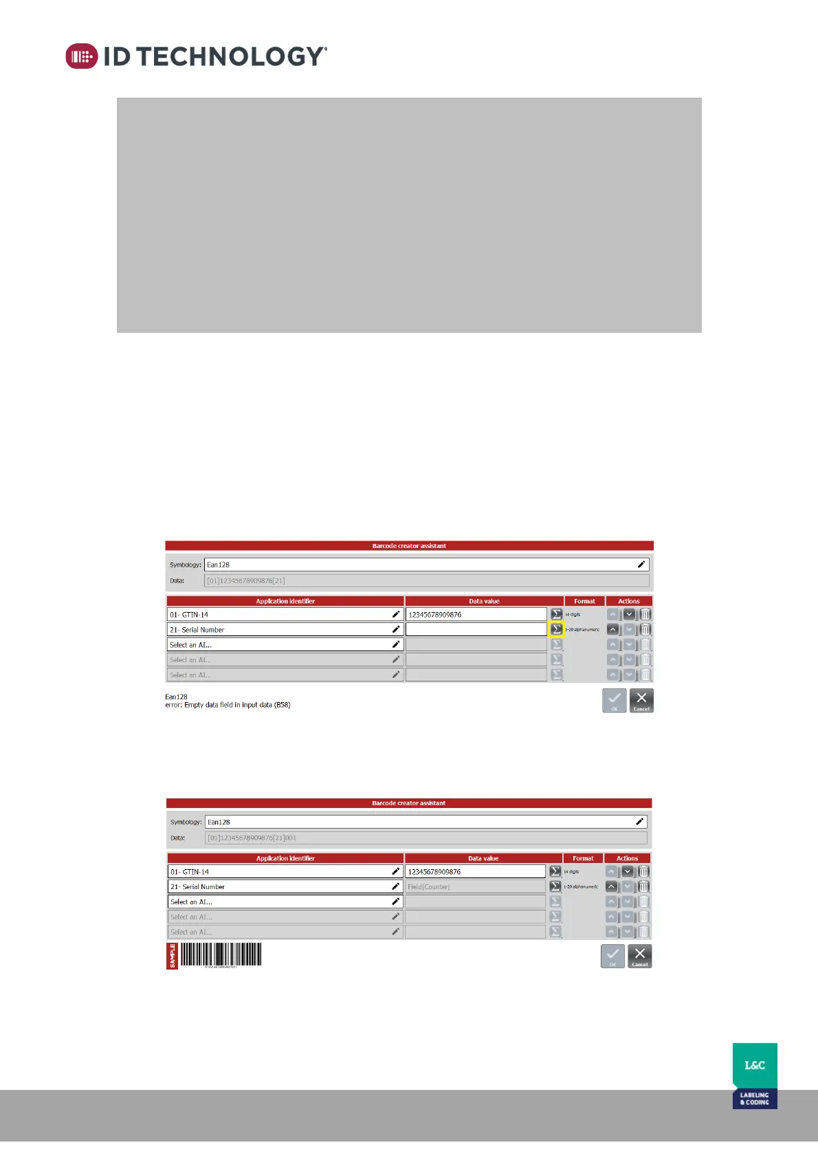7. Once the AI is edited with a formula, the entire barcode will be converted to a GS1