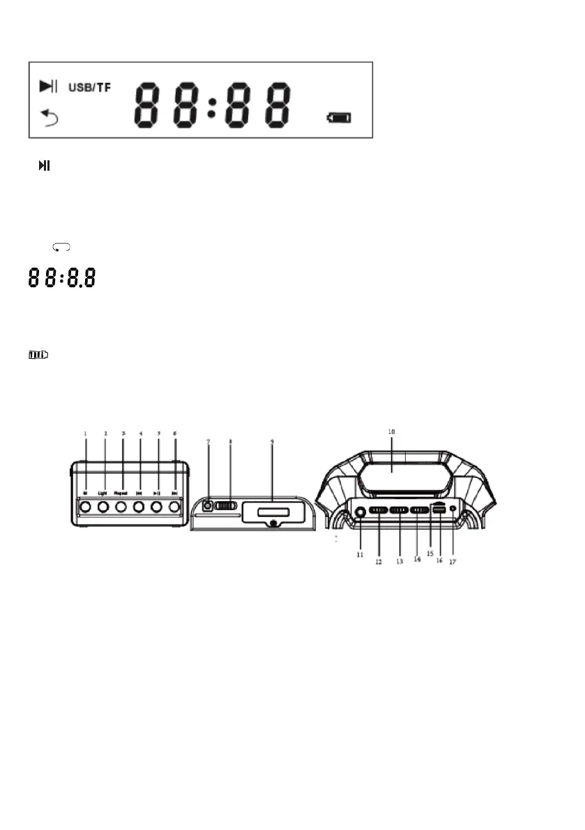 • USB/TF: L'icône est affiché en mode USB/TF MP3.