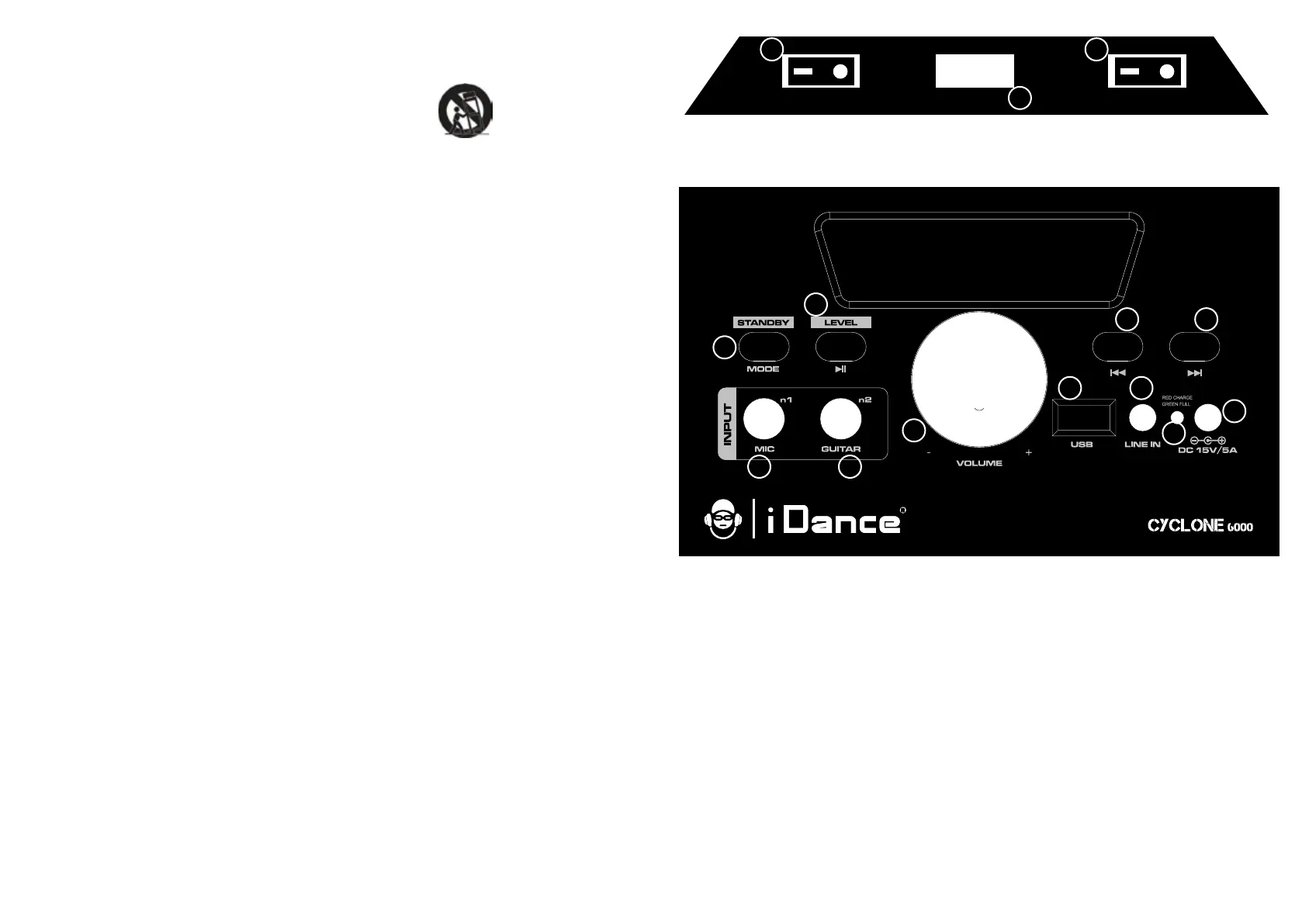 9. Linea ingresso: Ingresso mini jack da 3,5 mm per linea ingresso per audio esterno.