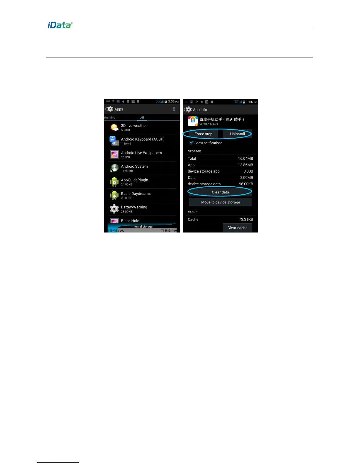 access the application information screen, and perform operations such as forcibly