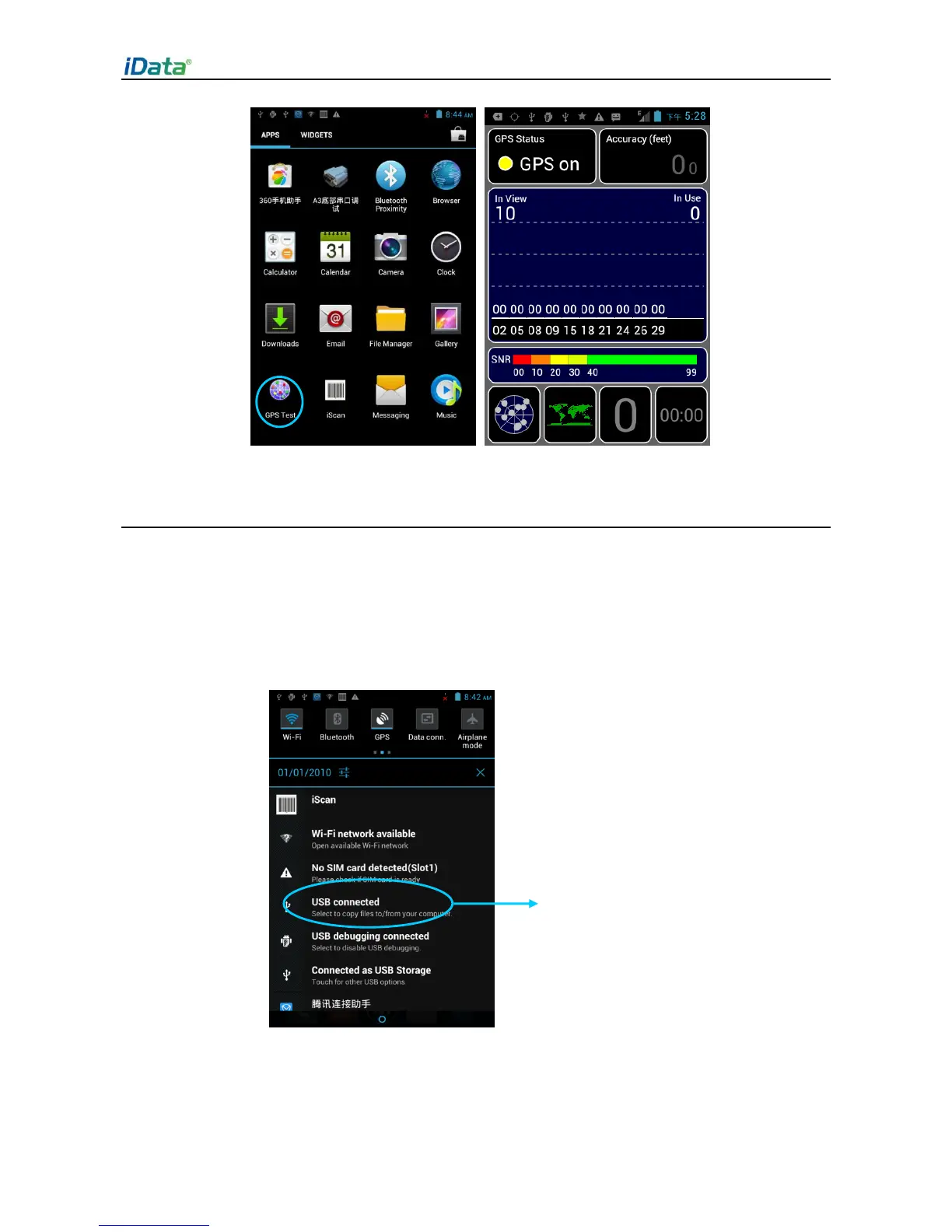 2. The icon of USB connection is displayed in the status bar of the iData 95. Slide the