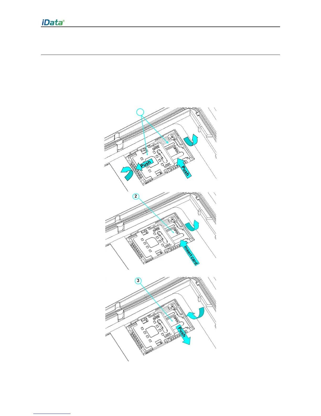 1. Push the card cover along the direction marked on the cover and open the cover.