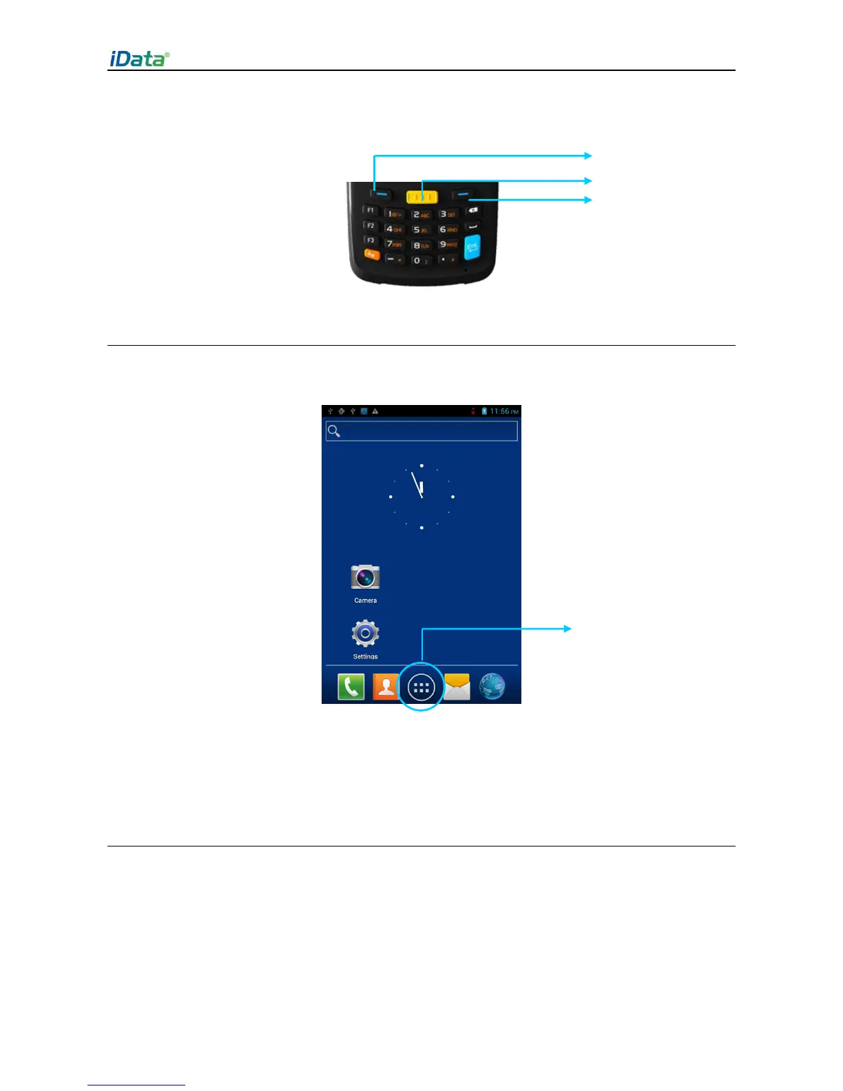 The iData 95 has five home pages. Slide to the left or right to switch among the pages.