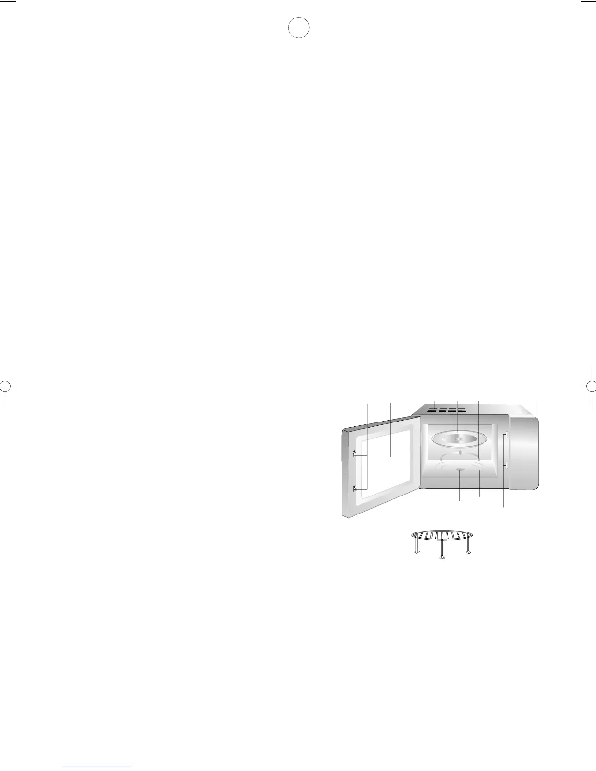 - Før første anvendelse af ovnen, skal man sikre sig at drejetallerkenen er på plads, og man skal sikre sig at alt emballage og