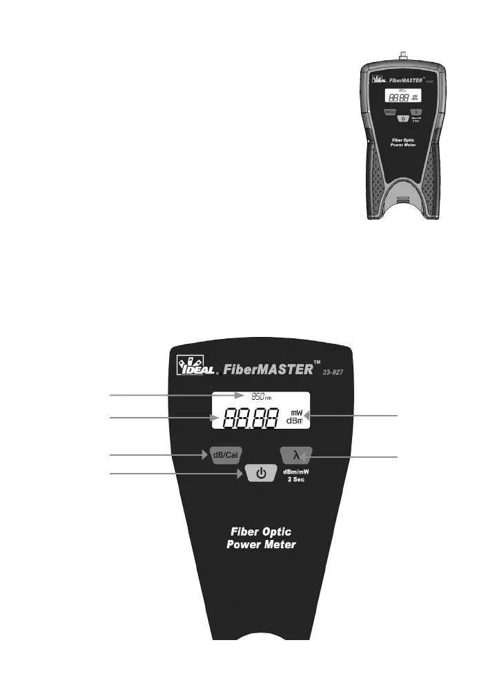 Wavelength select and dB/mW toggle button. Press and release to change 6.