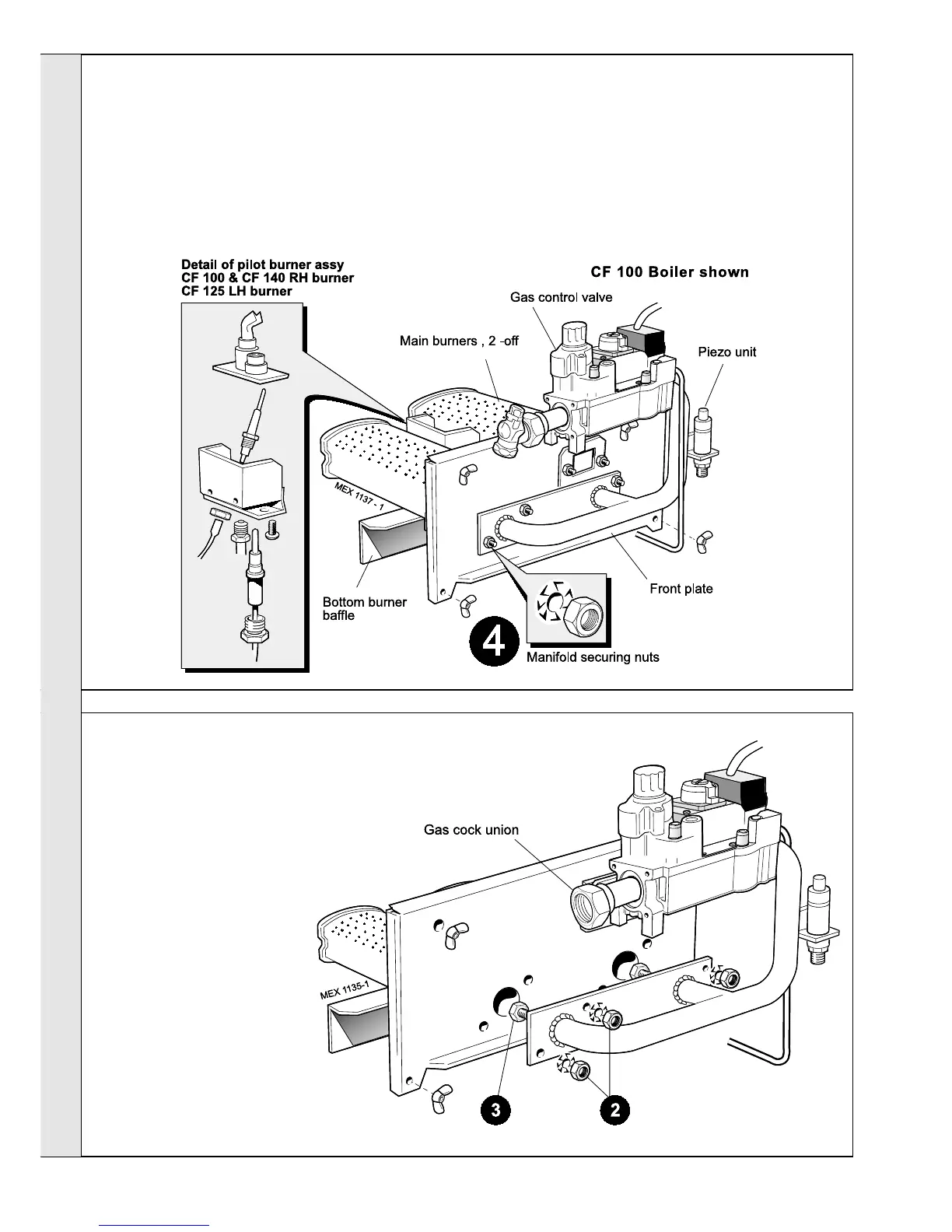 4. Remove the 2 screws securing the pilot burner and
