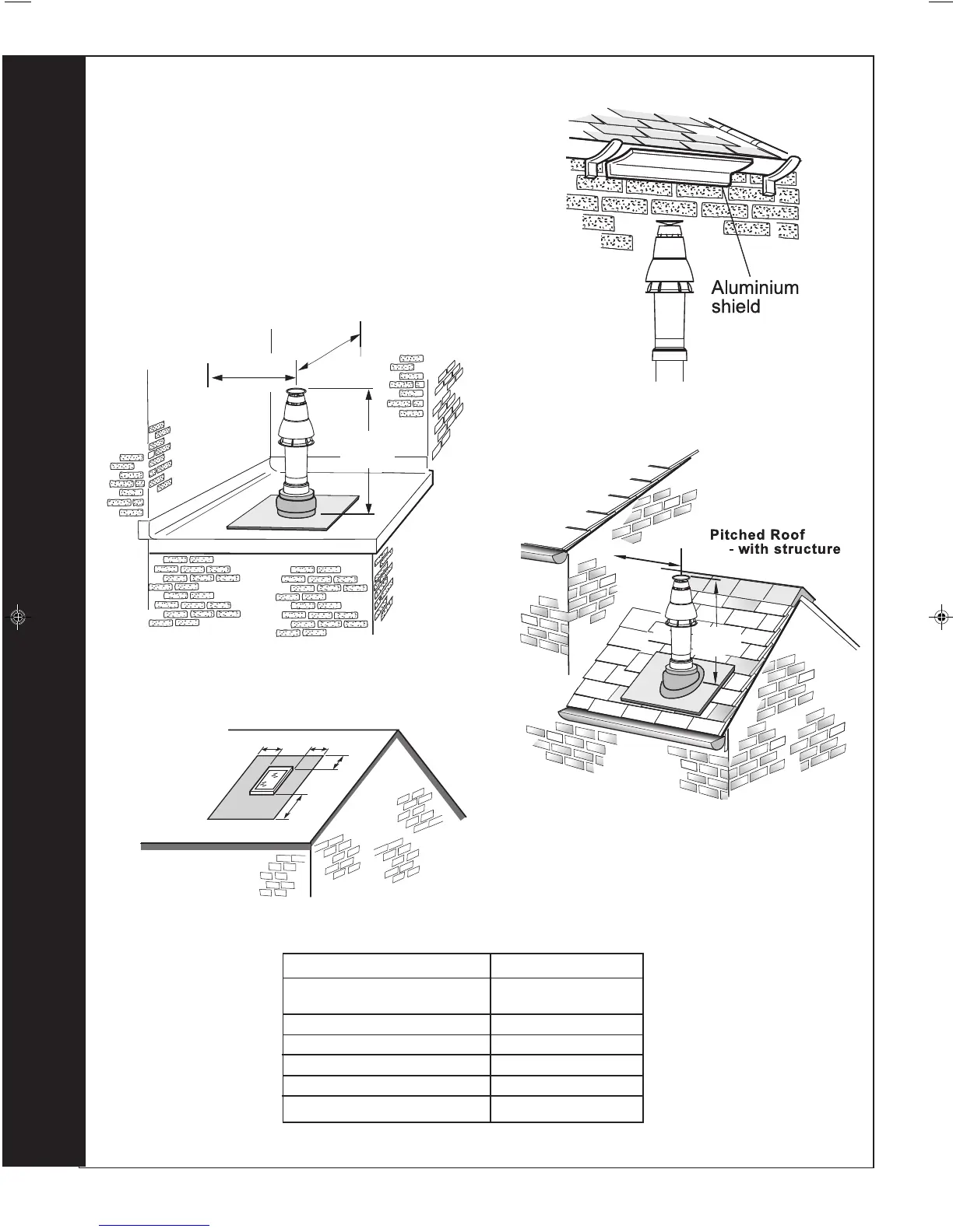 The flue terminal shall not penetrate the shaded area of the roof