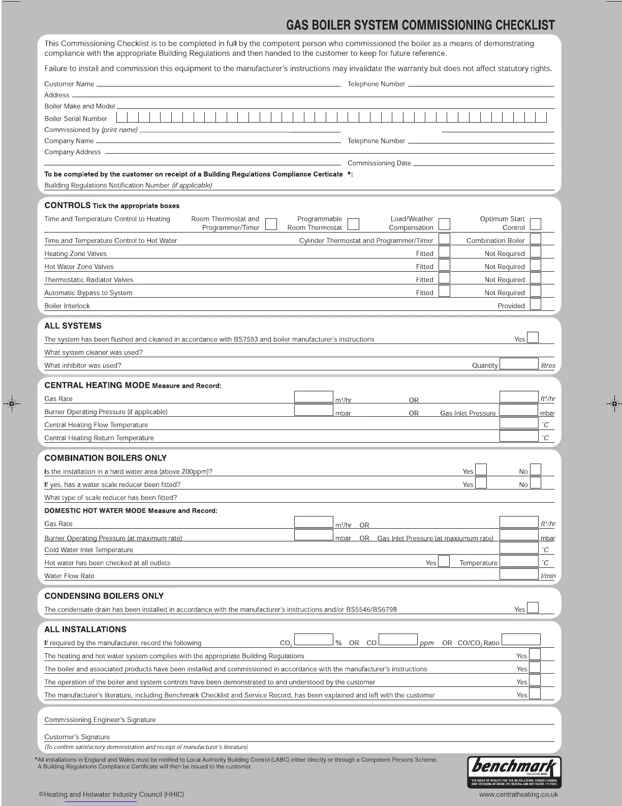 Ideal Boilers Esprit 2 - Commissioning Checklist and Service Record