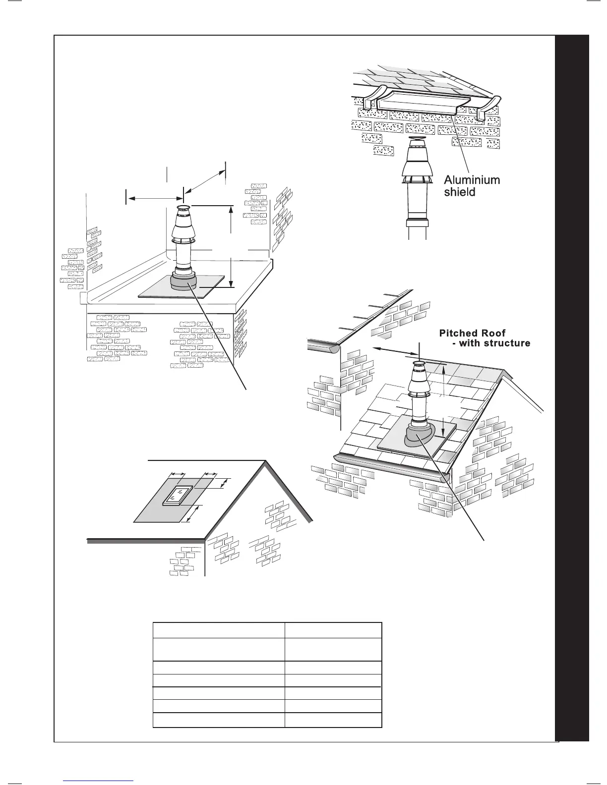 The flue terminal shall not penetrate the shaded area of the roo