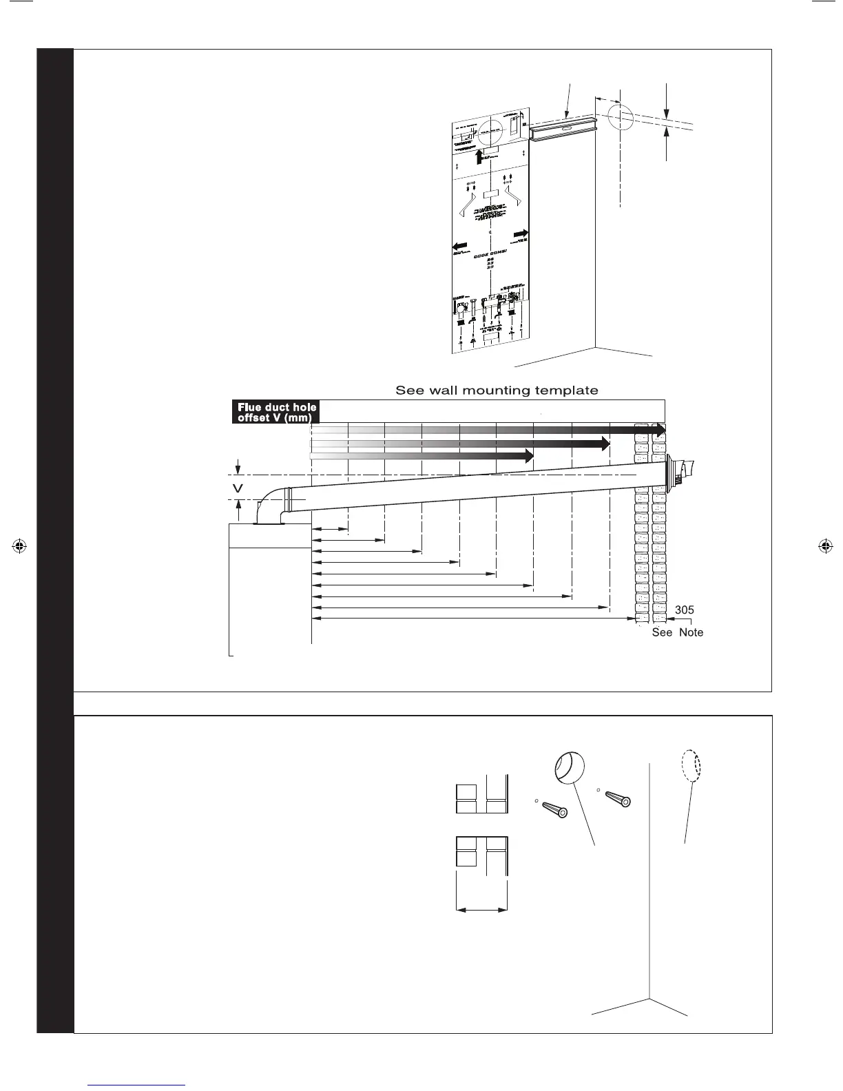 2. For flue lengths greater than 600mm the flue must be inclined by 26mm per 1000mm flue length.