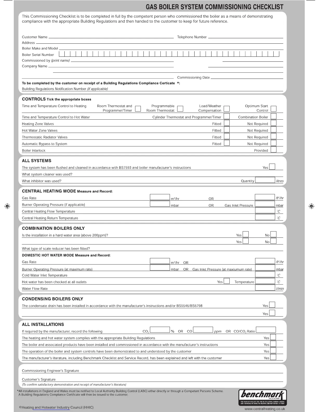 Failure to install and commission according to the manufacturer’s instructions and complete this Benchmark Commissioning Checklist will invalidate the warranty. This