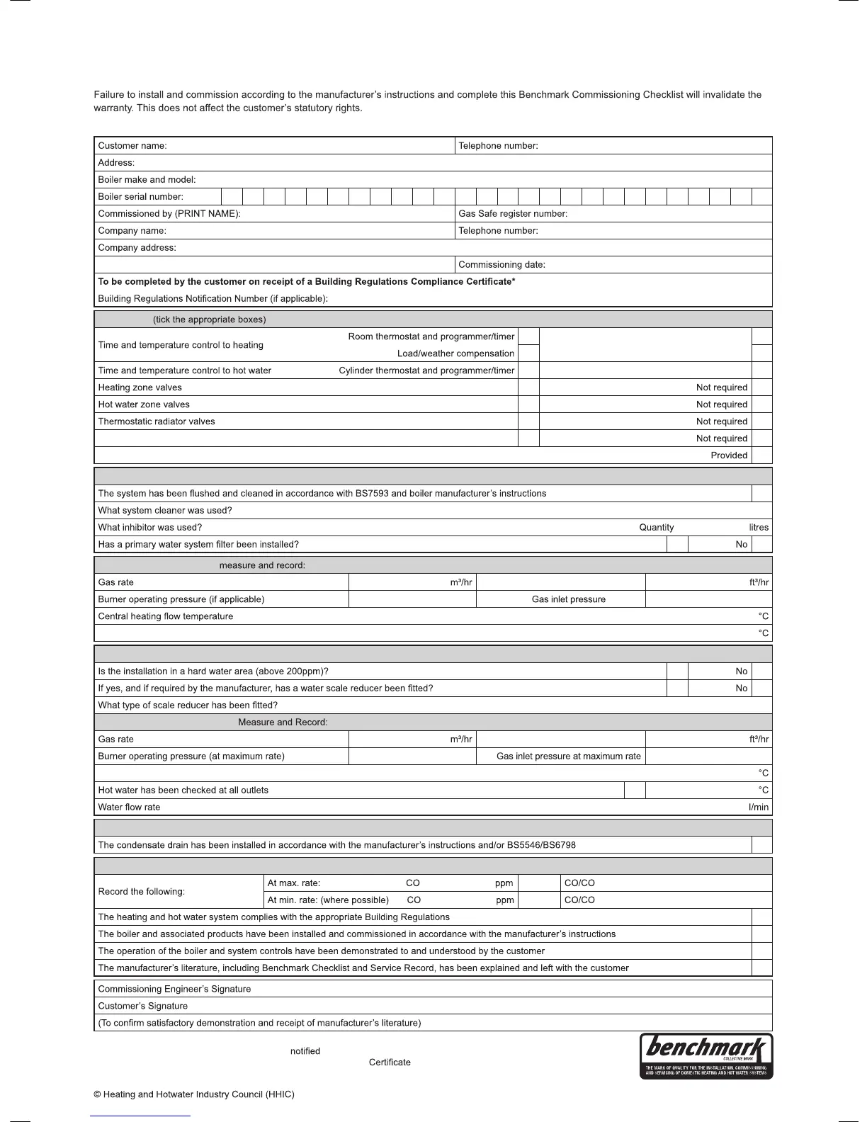 This Commissioning Checklist is to be completed in full by the competent person who commissioned the boiler as a means of demonstrating