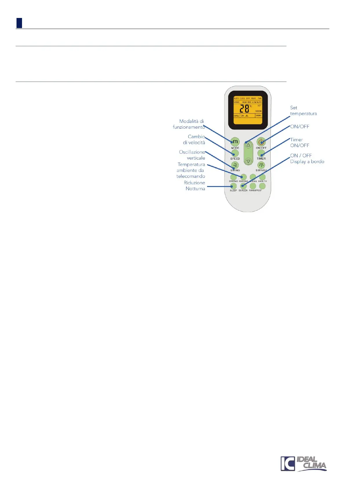 telecomando stesso. Per attivare la funzione, premere il tasto FEELING, compare sul display la temperatura