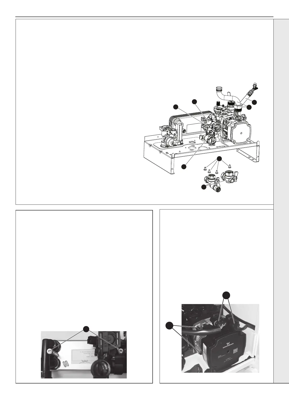19. Ret the DHW manifold, t the assembly back to the boiler