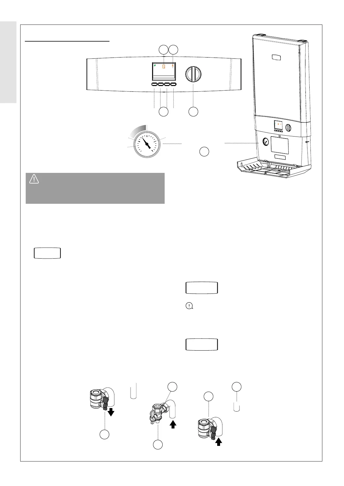 underneath the boiler symbol on the boiler display. Turn