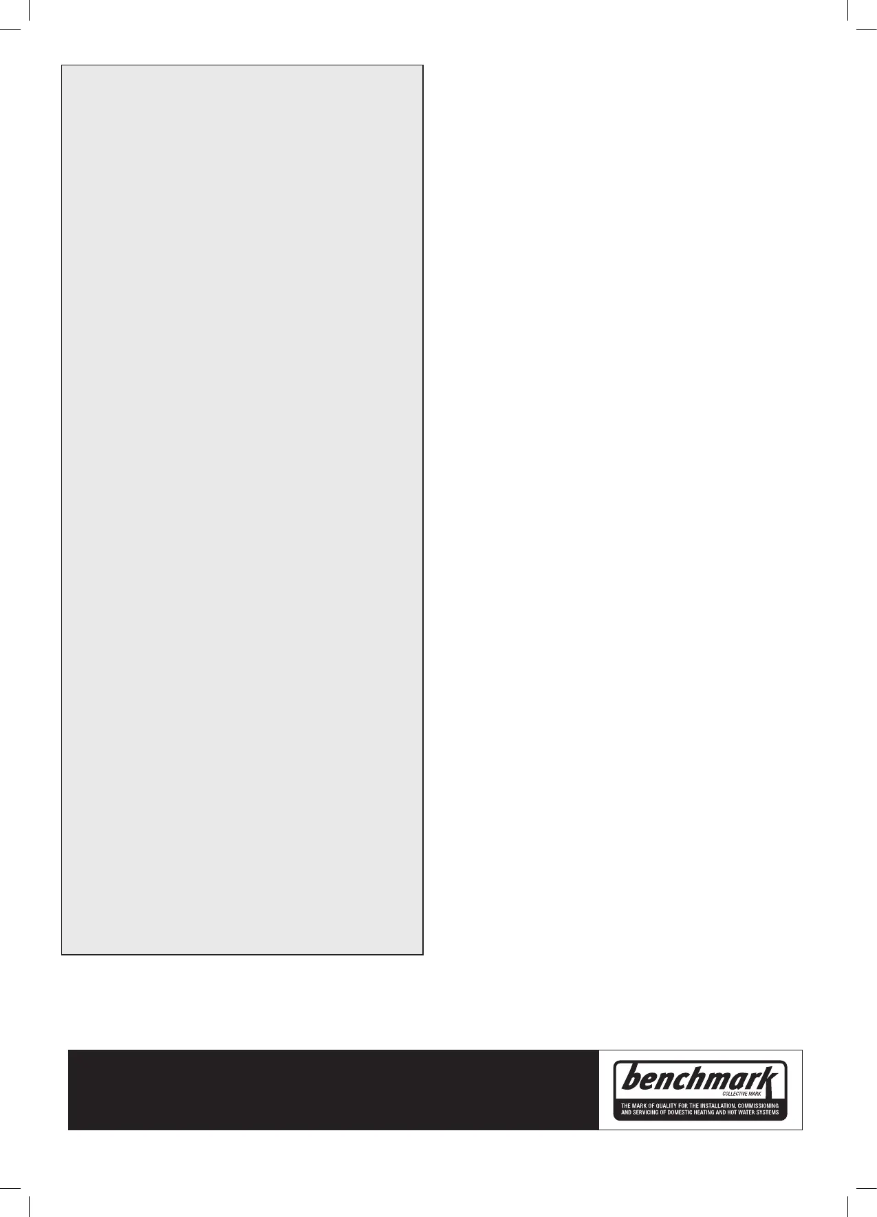 Benchmark Commissioning Checklist. You can check your installer by calling Gas Safe Register direct on 0800 4085500.