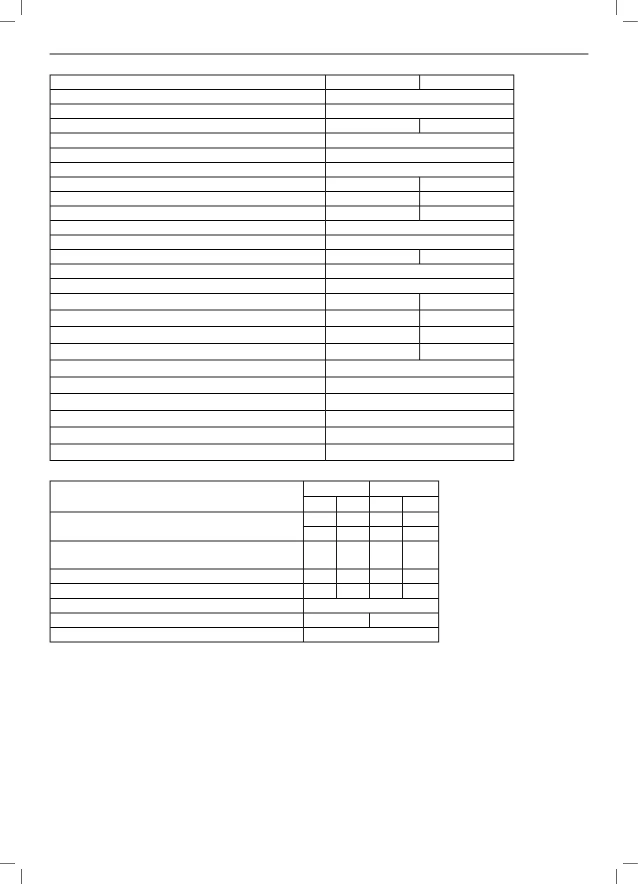 Table 2 - Performance Data - Central Heating