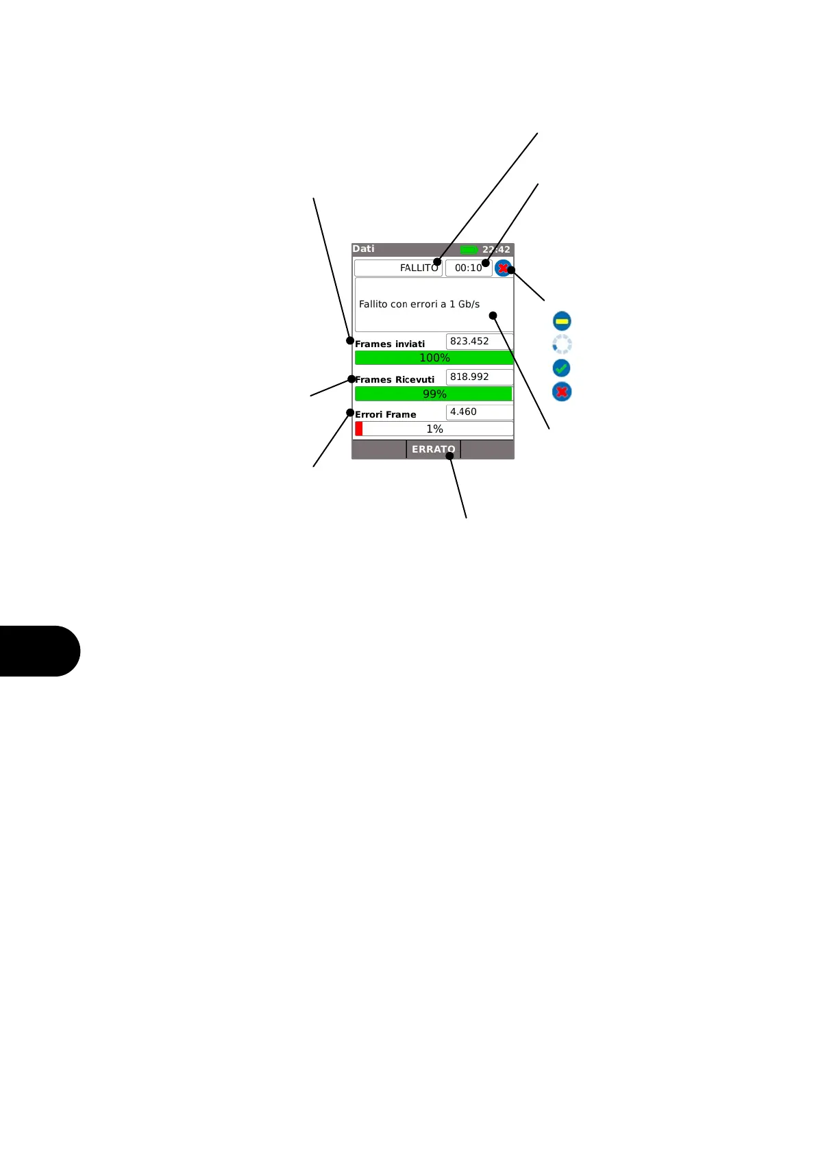 evidenziando l'icona Test dati nella schermata principale e premendo Enter.