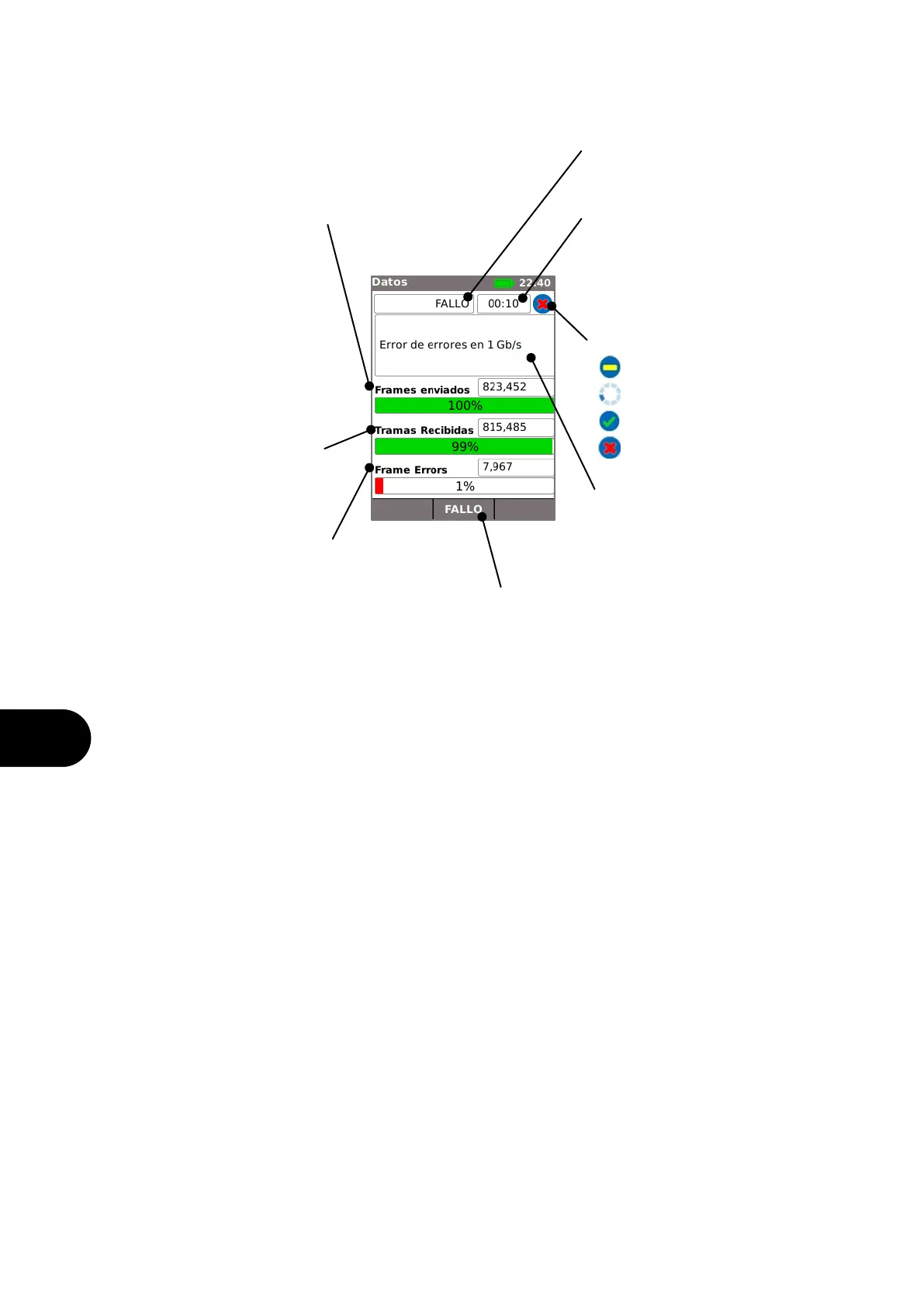 un fallo en el mapa de hilos. Si el test de datos falla, se recomienda inspeccionar las