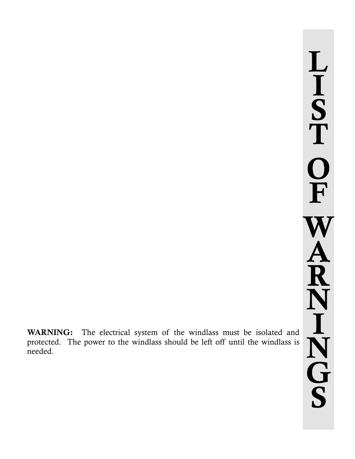 windlass. Failure to follow these warnings can result in serious injury.