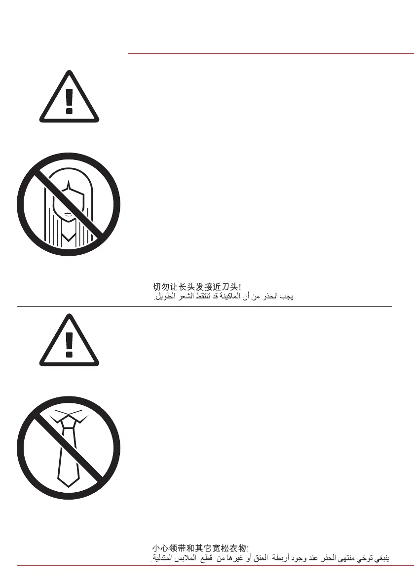 NO Vær forsiktig med langt hår i nærheten av skjæreverket!