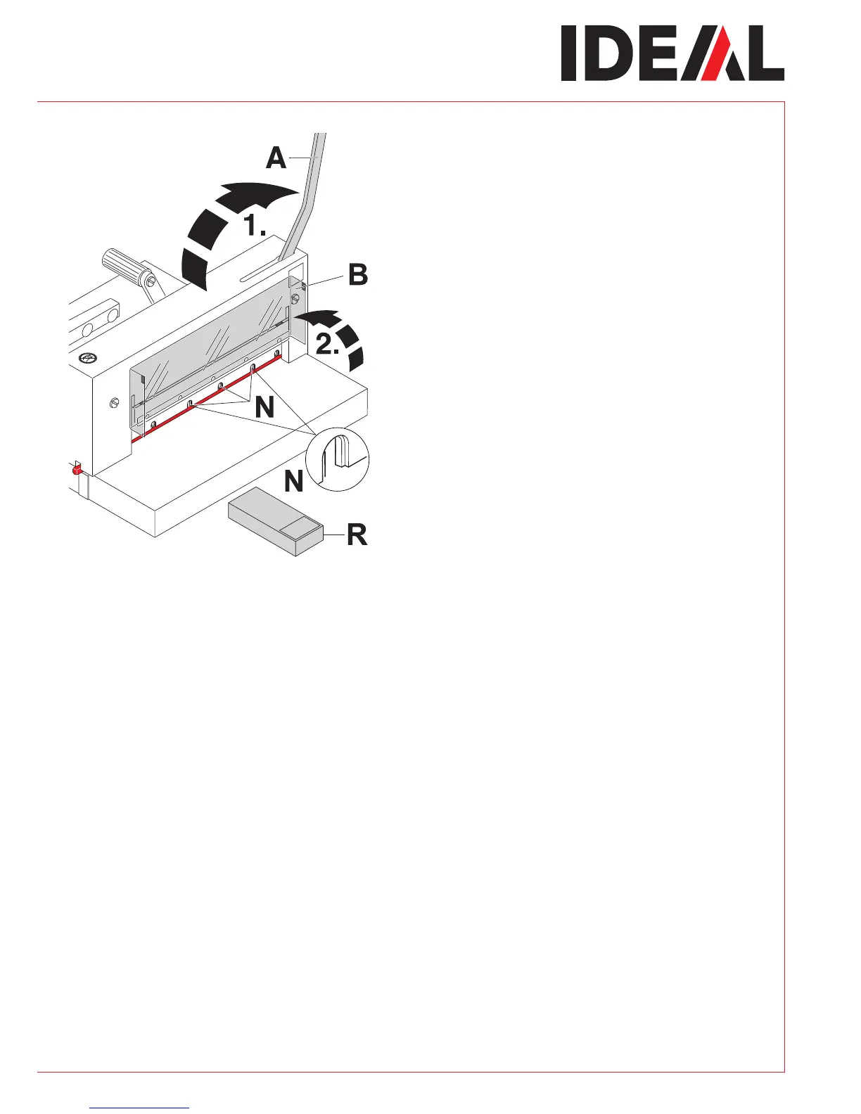 par l‘avant du massicot :