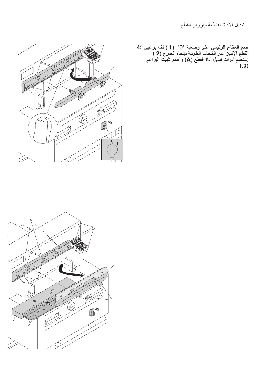 Loosen the grips (2.) of the blade changing