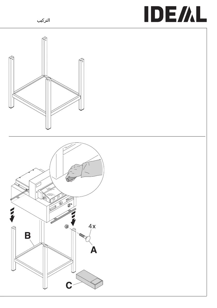 stand. Secure with 4 screws (A). Put the