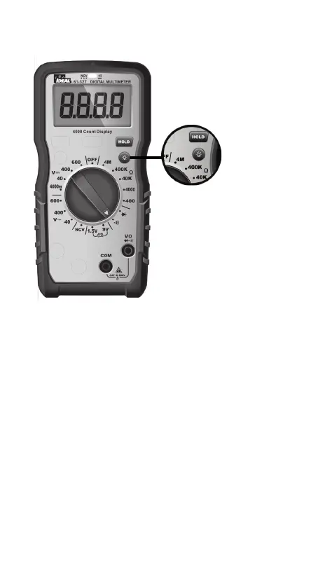 Presione el botón BACKLIGHT en el medidor para encender y apagar la luz de