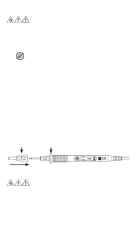 • When using the probes, keep fingers behind the guard rings on the probes.