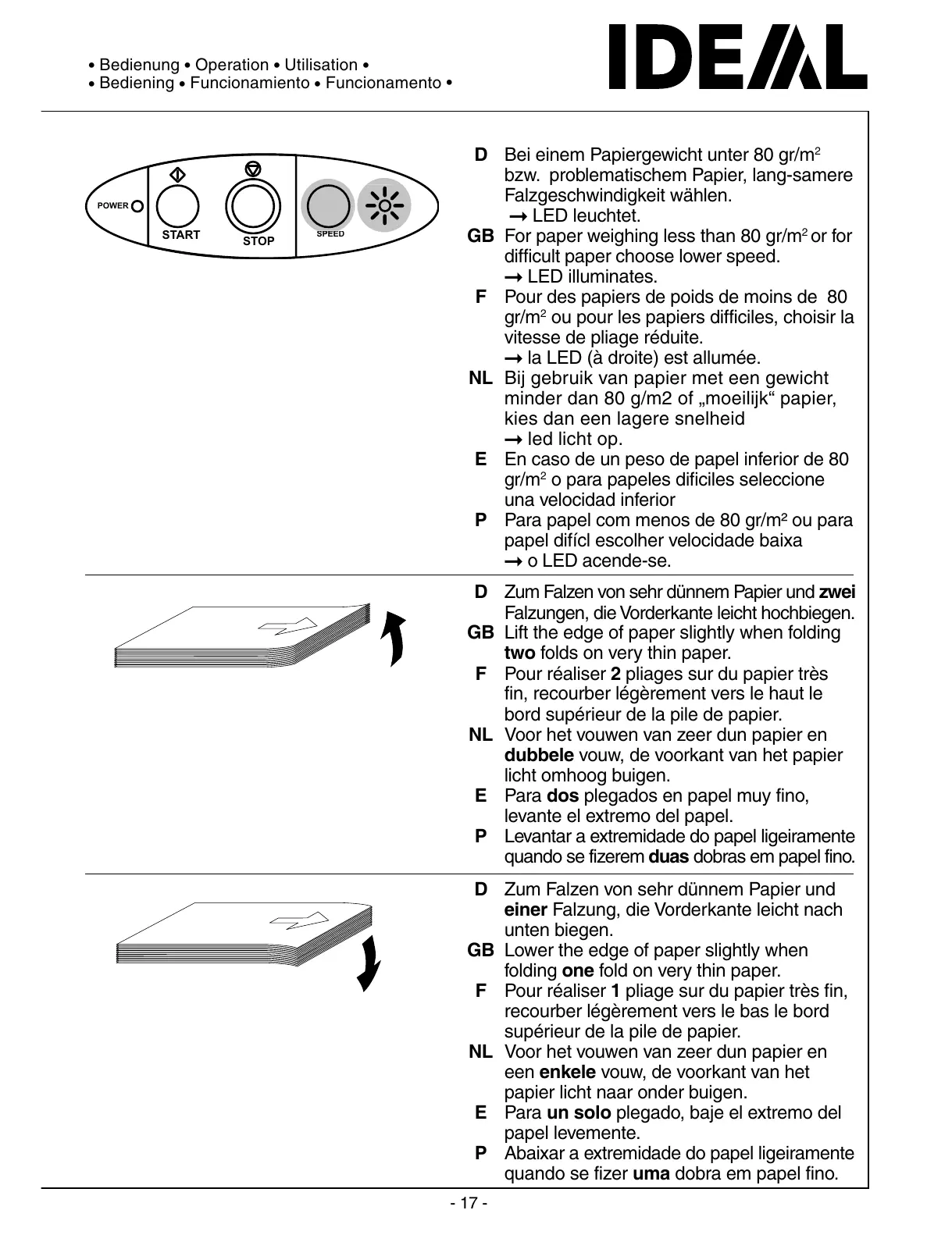 D Zum Falzen von sehr dünnem Papier und zwei