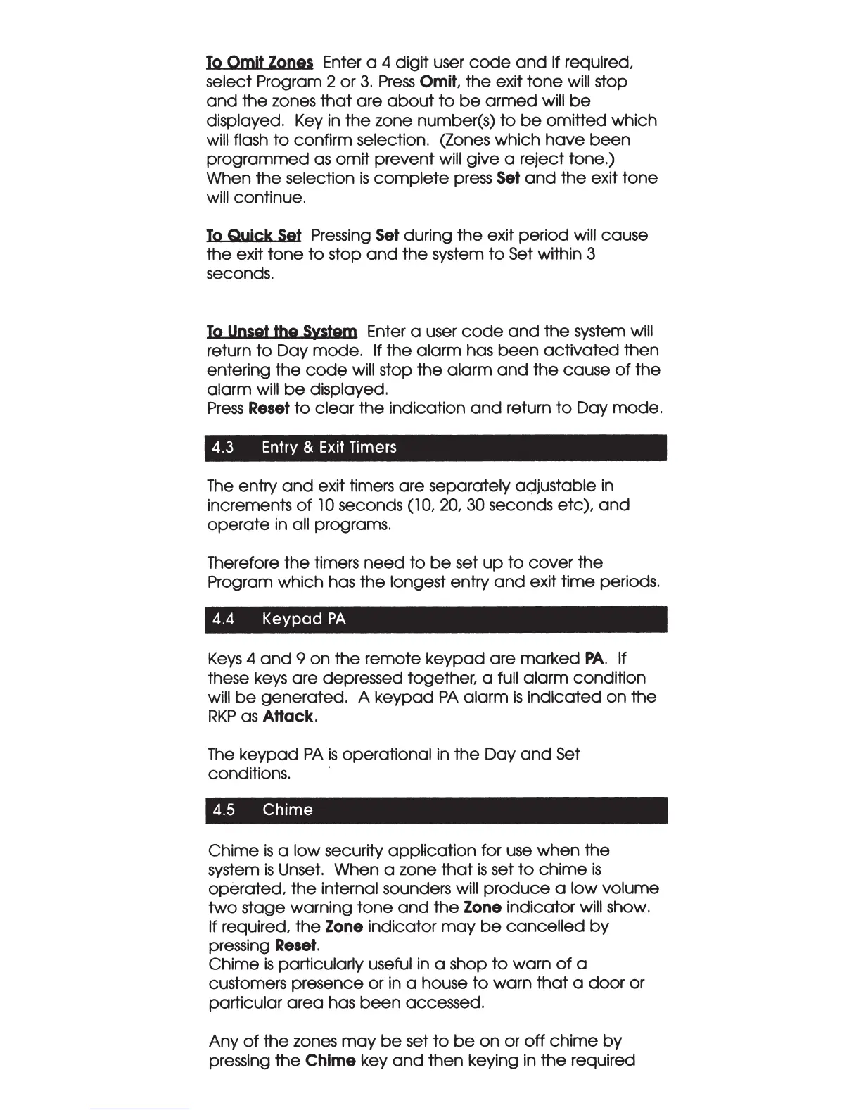 IDEAL Accenta - Entry and Exit Timers; Keypad PA; Chime; To Omit Zones