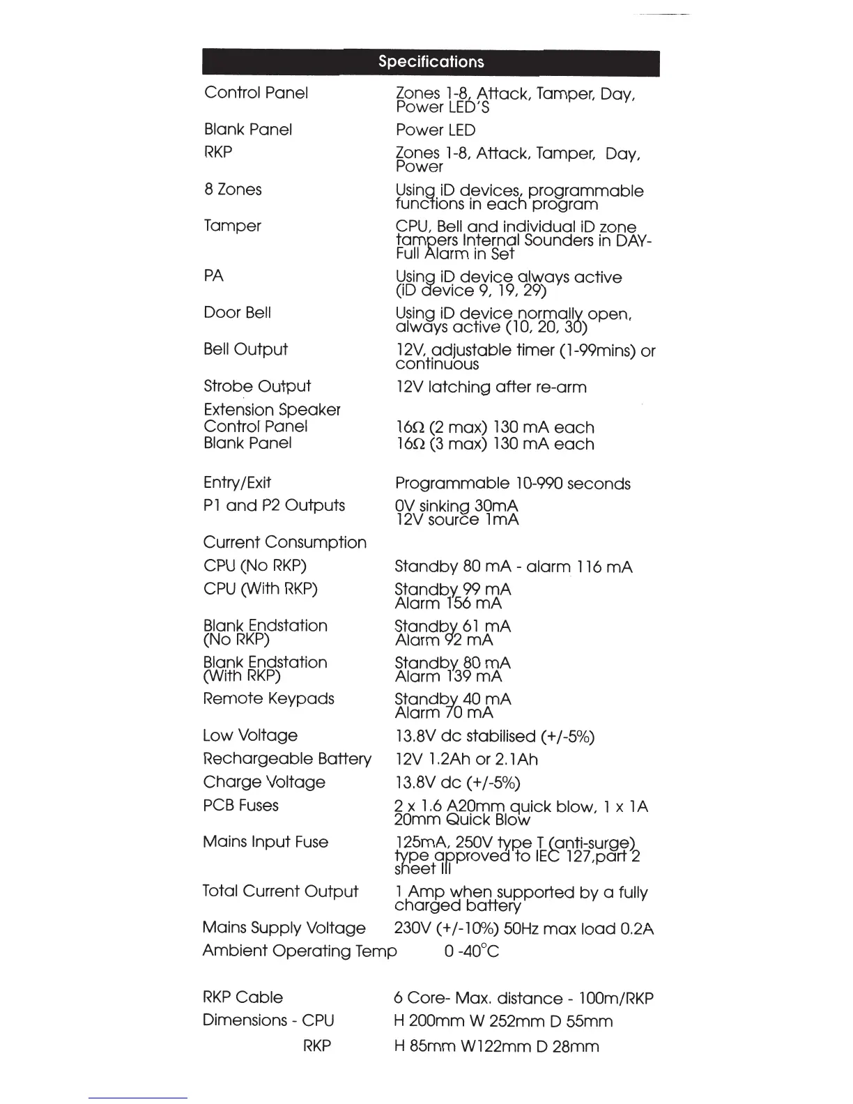 IDEAL Accenta - Specifications