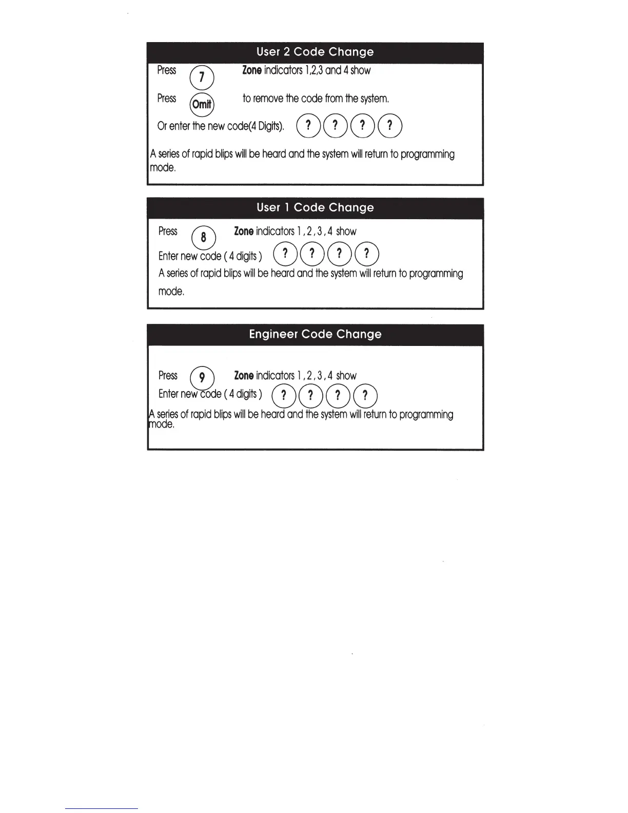 IDEAL Accenta - User 2 Code Change; User 1 Code Change; Engineer Code Change