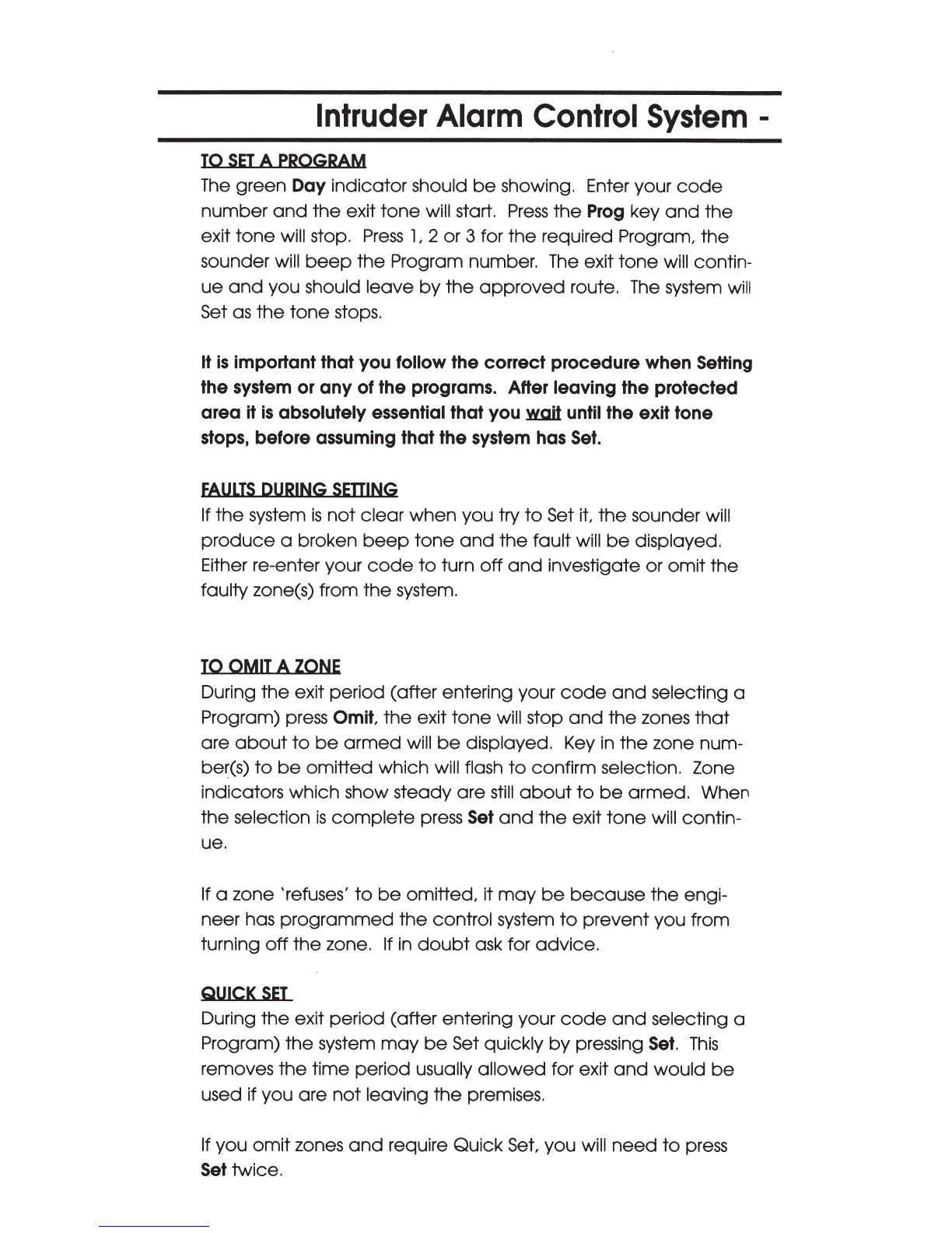 IDEAL Accenta - Control System; To Set a Program; Faults During Setting; Quick Set