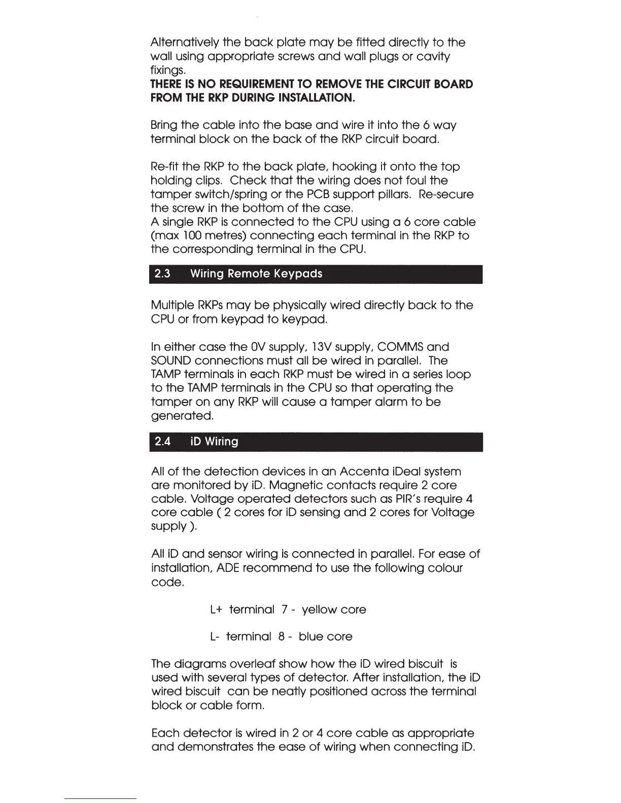 IDEAL Accenta - Wiring Remote Keypads; ID Wiring